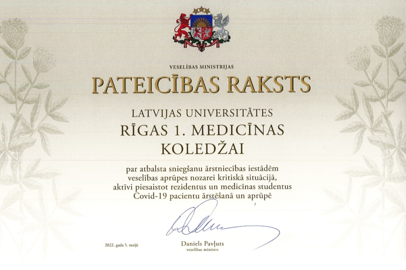 Esam gandarīti par mūsu koledžas vadības, studentu un pedagogu kopīgā darba pozitīvo novērtējumu. Īpašs paldies mūsu studentiem, kuri pierādīja savu uzticību veselības aprūpei un nodemonstrēja augstu valstisku atbildību krīzes apstākļos. Lepojamies!