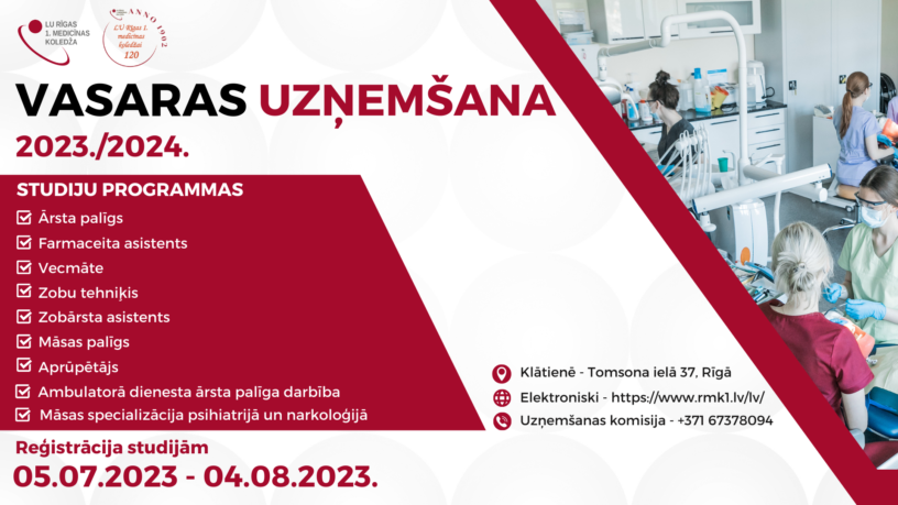Vasaras uzņemšana 2023./2024. LU Rīgas 1. medicīnas koledžā.
