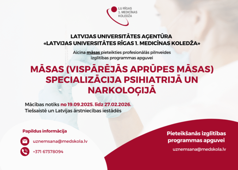 Plašāka informācija: https://www.rmk1.lv/lv/masas-visparejas-aprupes-masas-specializacija-psihiatrija-un-narkologija-2/