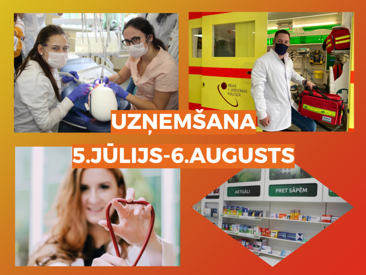 Piesakies studijām LU Rīgas 1. medicīnas koledžā pirmā līmeņa profesionālās augstākās izglītības programmās, kā arī profesionālās vidējās un arodizglītības programmās – elektroniski koledžas mājaslapā ŠEIT vai klātienē koledžā Tomsona ielā 37 līdz 2021.gada 6.augustam.