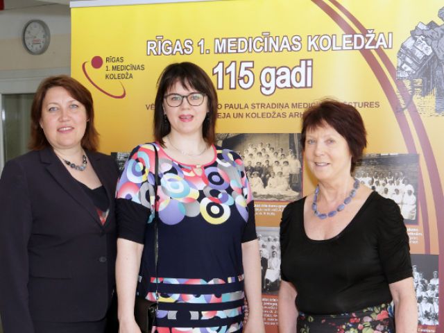 No kreisās: Veselības aprūpes katedras vadītāja Inta Miķele, Klaipēdas koledžas lektore, Māszinību studiju programmas docētāja Irina Zeleniene, zinātniskā darba koordinatore Agija Pāža.